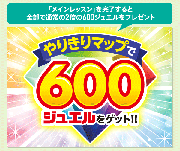 11月号の「メインレッスン」をやって「やりきりマップ」を全て開くと、いつもは300ジュエルのところ、2倍の600ジュエルをプレゼントします。
