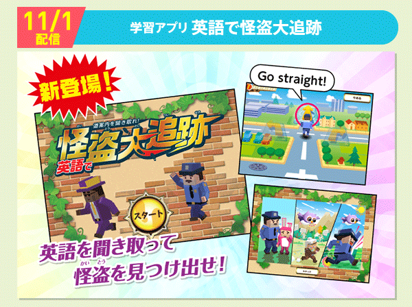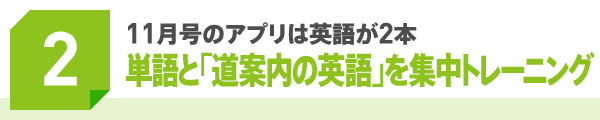 すぐに使える身近な英語でありながら、“Turn right.”(右に曲がって)や“Turn left.”(左に曲がって)などといった左右をまちがえやすく表現が複雑な「道案内の英語表現」が習得でき、授業やリスニングテストで活躍できるアプリです。