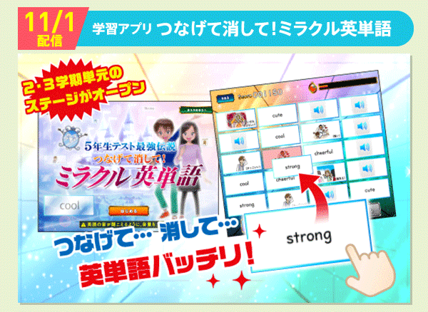 11/1より、2・3学期単元のステージがオープンしますので、学校のテスト対策に役立ちます。