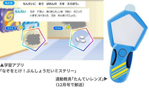 「メインレッスン」では、動画や操作で、考え方・解き方をしっかり理解し、学習アプリではゲーム形式で楽しく反復学習。12月号ではつまずきやすい難単元、文章題を理解し、たし算かひき算かを判断して立式できる力を身につけます。